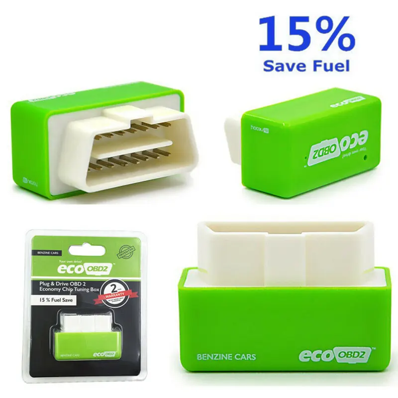 - New Arrival EcoOBD2 Plug&Driver OBD2 Green Scanner For Benzine Cars Professional Auto ECU Chip Tuning Box Economy Device Plug and Drive EcoOBD2 Economy Chip Tuning Box for Benzine 15% Fuel Save