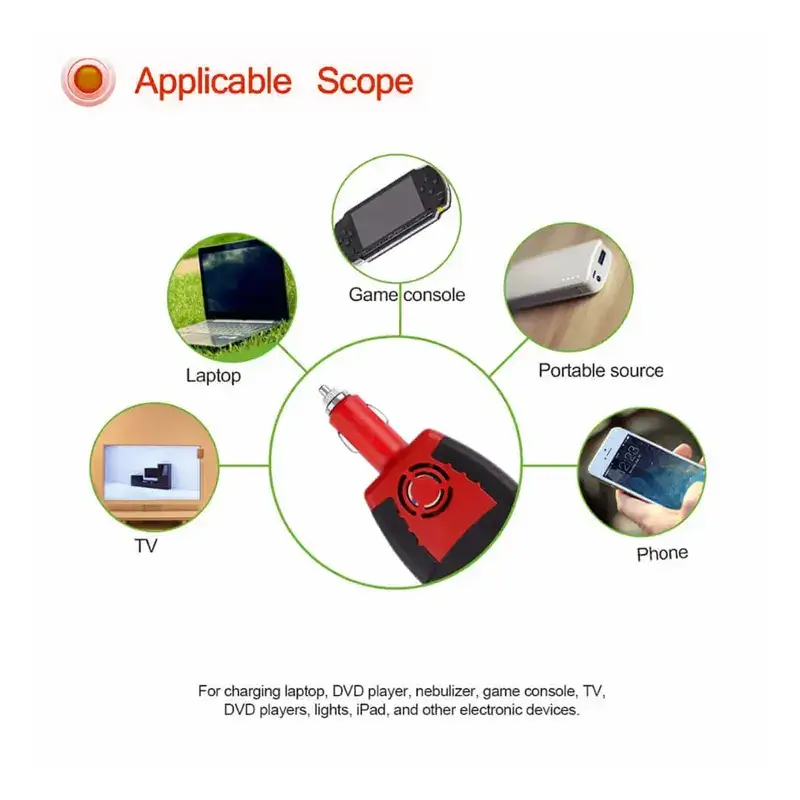 - Built-in cooling fan, auto-shutdown to keep your appliance and car from short circuit, low voltage, and overvoltage.