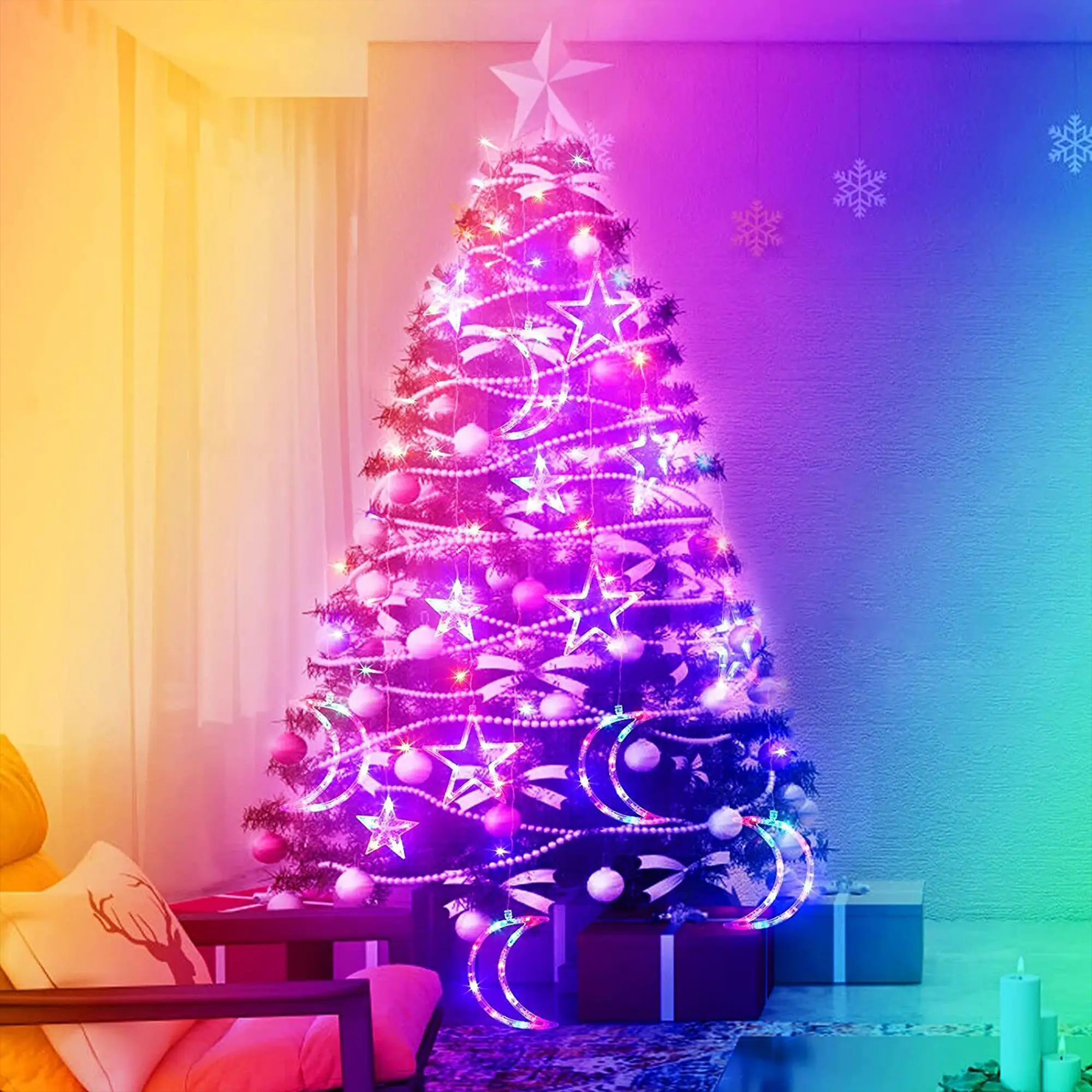 Star Moon String Lights Curtain Style Led Decor Light 8 Lighting Modes Waterproof Twinkle Fairy Light for Backyard Festivals (RGB)