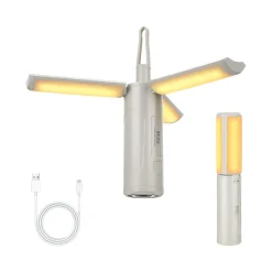 - The collapsible tripod provides stability on uneven surfaces, while the top hook lets you hang it on trees, tents, or walls.