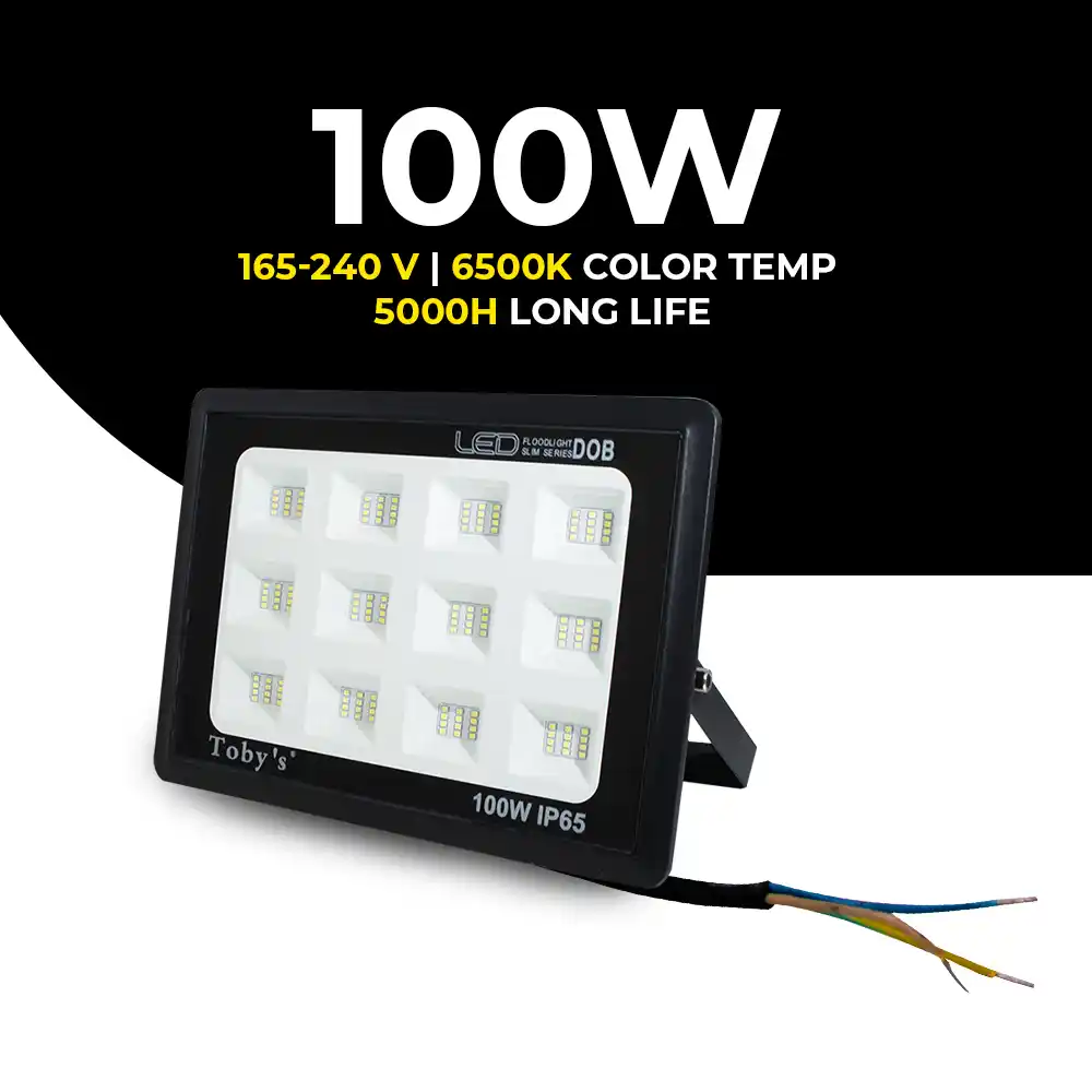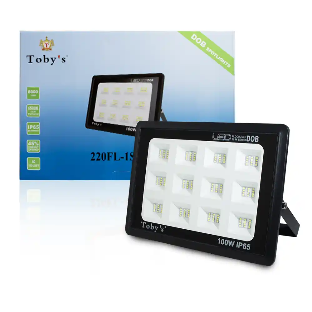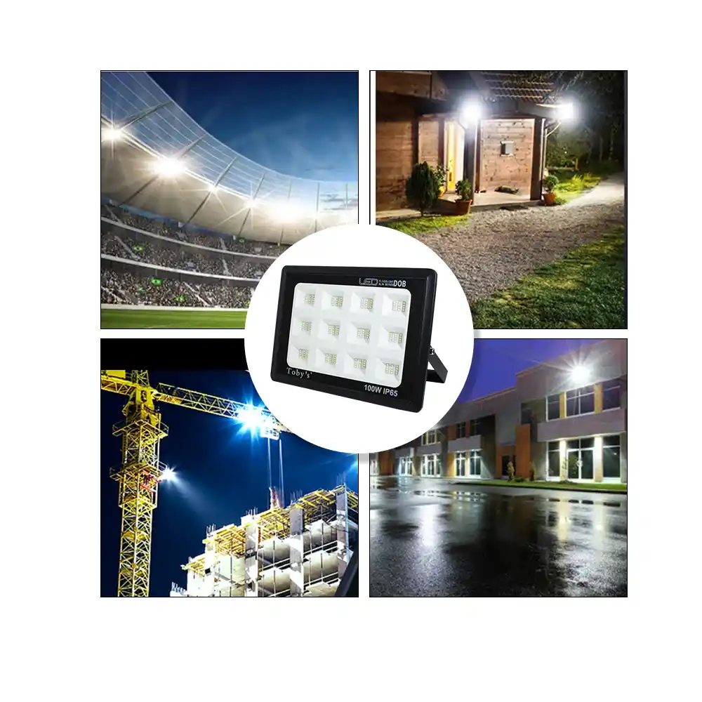 - Toby’s 100W LED flood light produce up to 8,000lm of super brightness. With high quality reflective film 120° wide beam angle illuminates larger areas without shadows or glare.